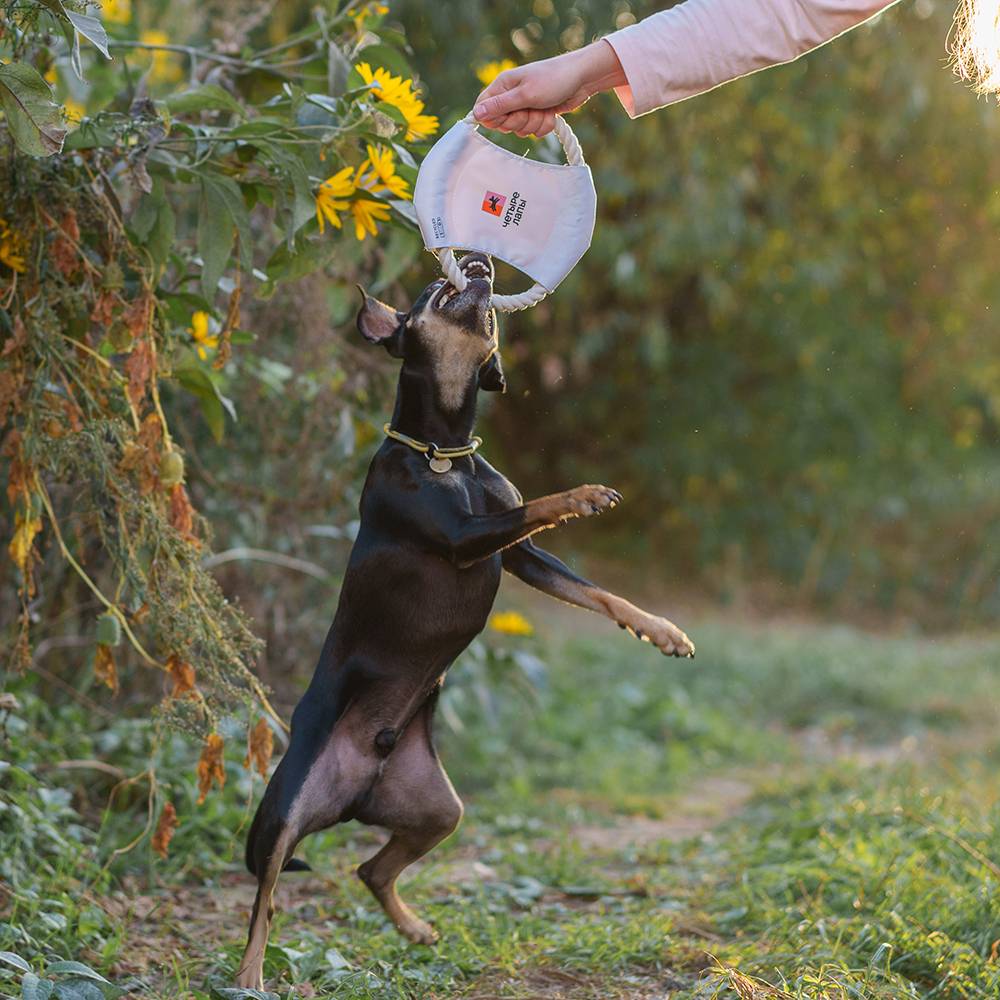 Игрушка для собак Фрисби с канатом и логотипом Четыре Лапы – отличный вариант для веселых игр с четвероногим другом.