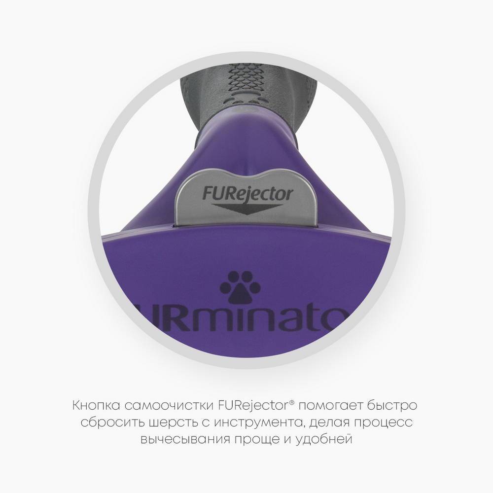 Кнопка самоочистки легко сбрасывает шерсть с инструмента. Защелкните ее для защиты в процессе хранения. Защитные края предупреждают давление на кожу.