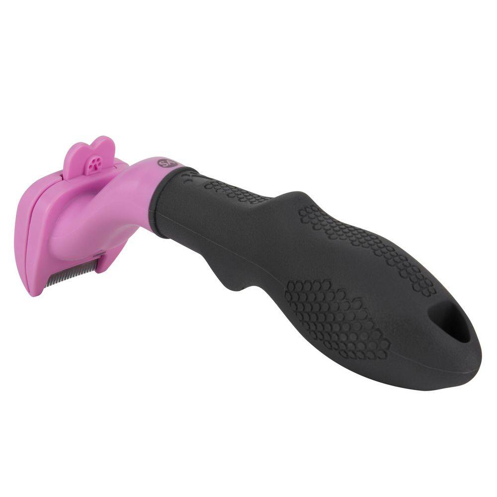 Кнопка самоочистки легко сбрасывает шерсть с инструмента. Защелкните ее для защиты в процессе хранения. Защитные края предупреждают давление на кожу.
