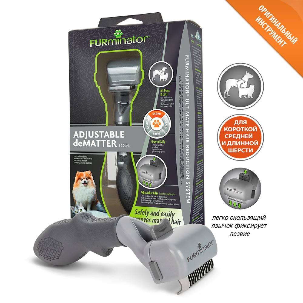 Регулируемый колтунорез FURminator легко и безопасно удаляет колтуны. Используйте по необходимости, в том числе ежедневно, на сухой шерсти.