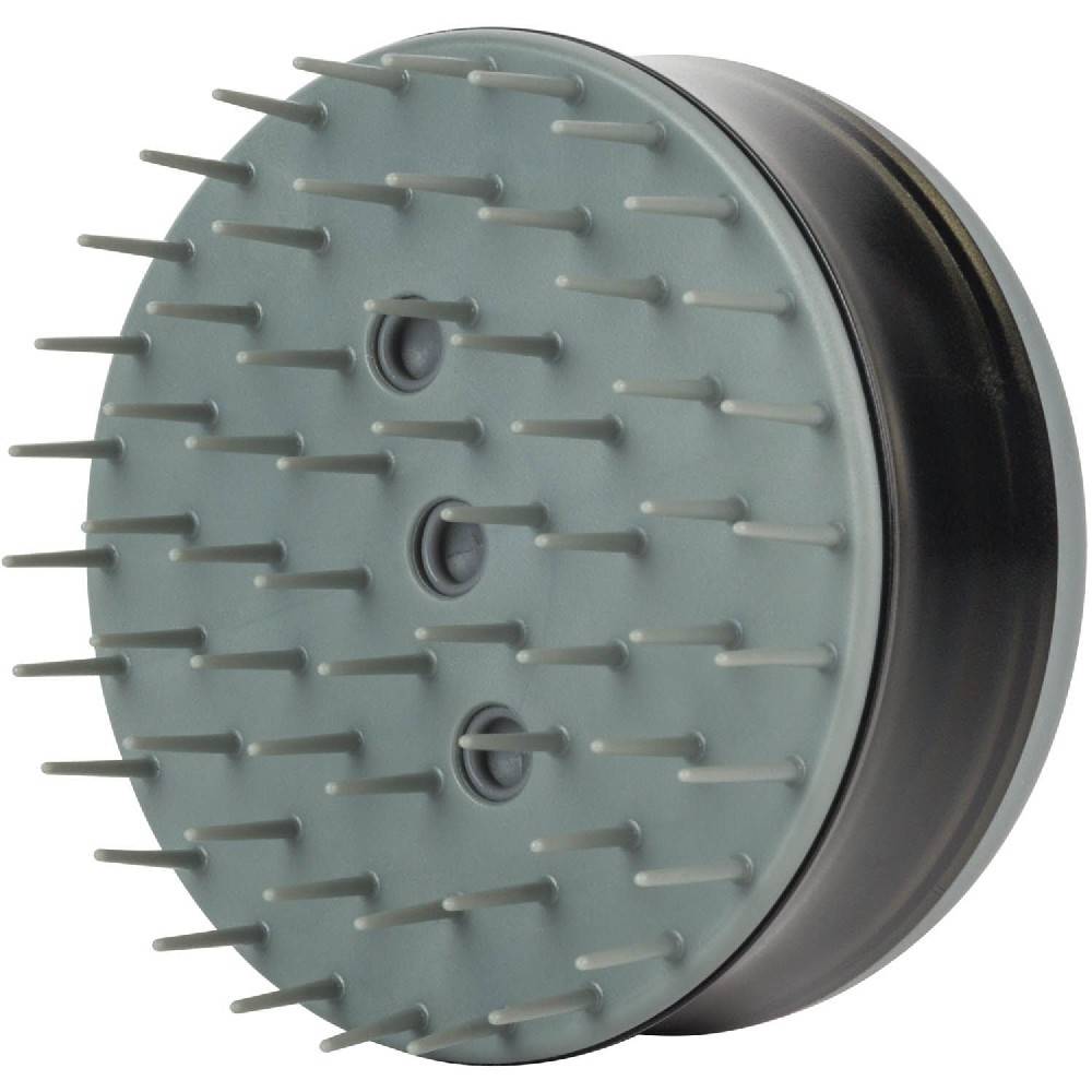 Тщательно смочите шерсть питомца и помассируйте ее с помощью щетки для купания, нажимая на кнопку для выдавливания шампуня. Щетка раздвинет шерсть и поможет равномерно распределить шампунь или кондиционер.