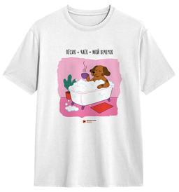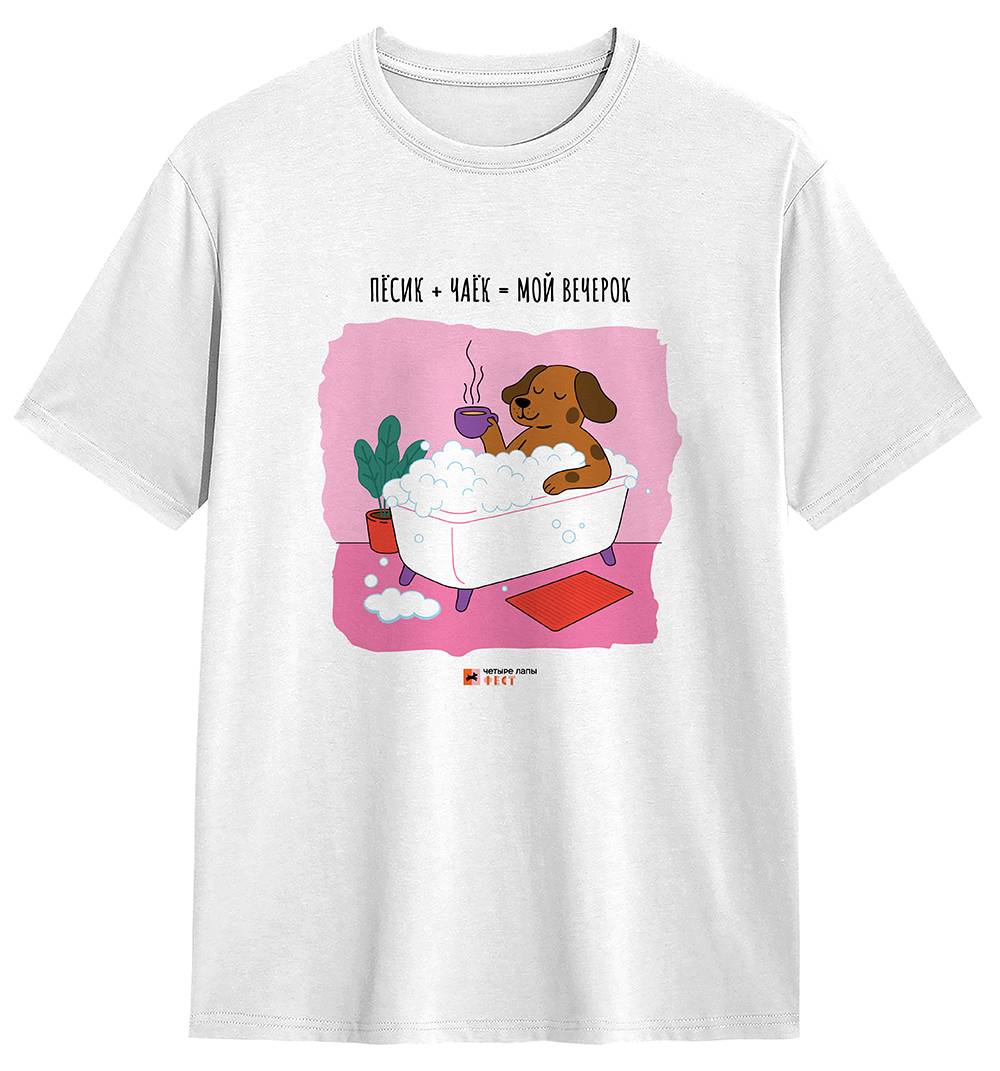 Базовая белая футболка Пёсик + Чаёк от Четыре Лапы станет отличным дополнением к вашему гардеробу. А еще – это замечательный подарок для любителей домашних животных. Успейте приобрести – количество футболок ограничено!
