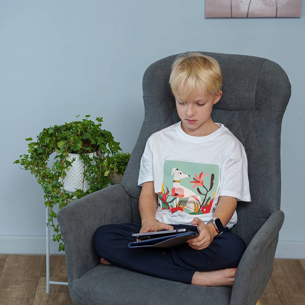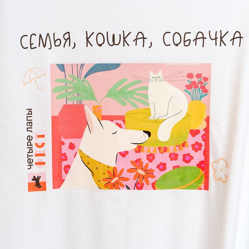 Базовая белая футболка Четыре Лапы станет отличным дополнением к гардеробу вашего ребенка. А еще – это замечательная идея для подарка подрастающим любителям домашних животных. Успейте приобрести – количество футболок ограничено!