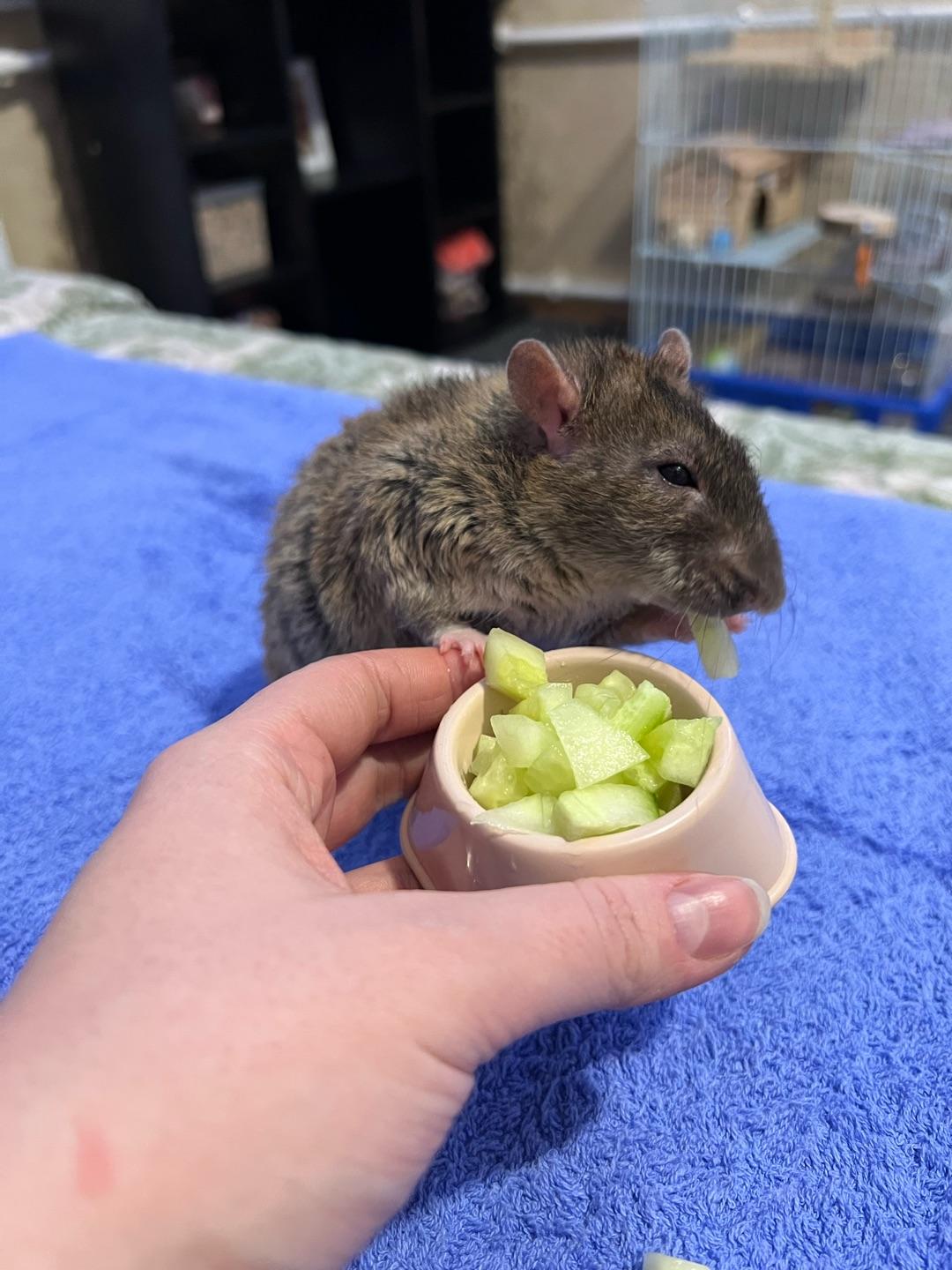 Крыс кушает из неё пюре, йогурты и овощиКомментарий