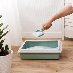 Хороший совок для уборки лотка с любым комкающийся наполнителем: древесным, тофу, на глиняной основеКомментарий