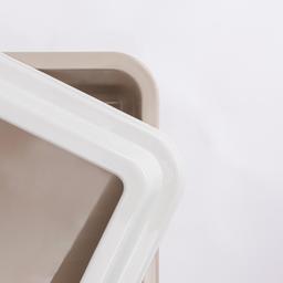 Бортик туалета надежно фиксируется, благодаря этому бортик не слетает, когда животное начинает закапывать в туалете.