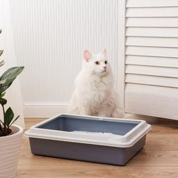 Туалет с бортиком от бренда Georplast подходит для взрослых кошек и котят всех пород.