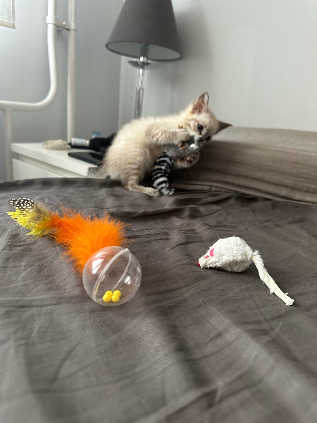 Котеночек в восторге от игрушки
