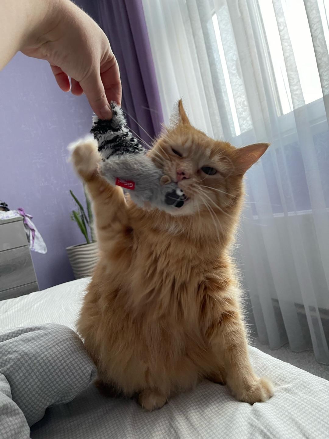 Любимая игрушка у кота! В хвосте погремушка. Игрушку уже и стирали, и зашивали (игрушка крепкая, а обожание котика сильнее). Носит в зубах. Приносит в коридор и гоняет, может просто кувыркаться с енотом и драть когтями. Из всего множества игрушек выбирает чаще всего для игр эту.владимир