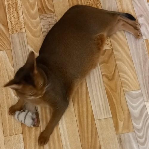 Кошка обожает мышку, играет с ней самостоятельно, носит в зубах, охотится, прыгает.Софья -.