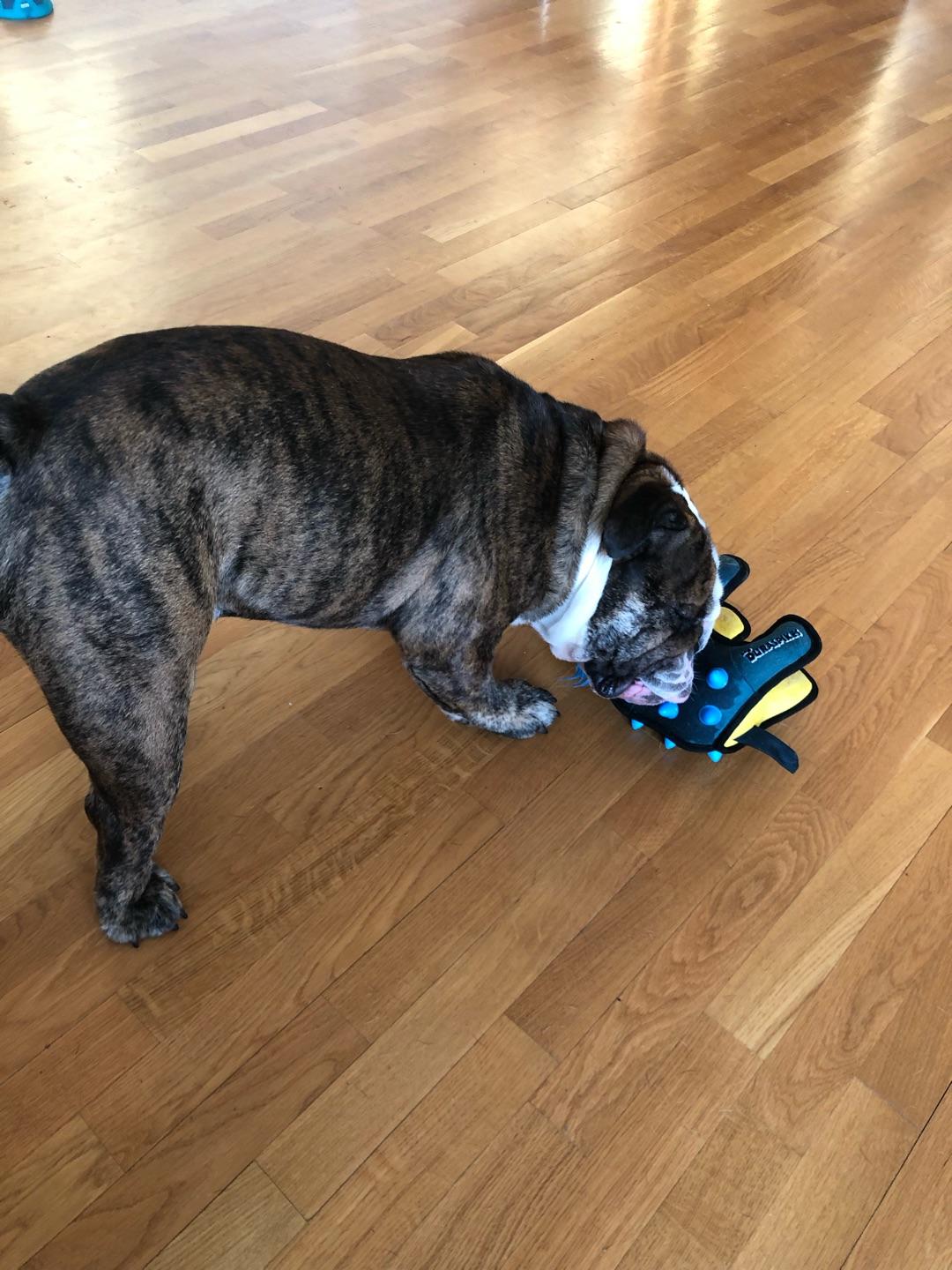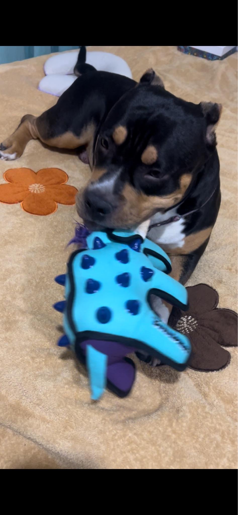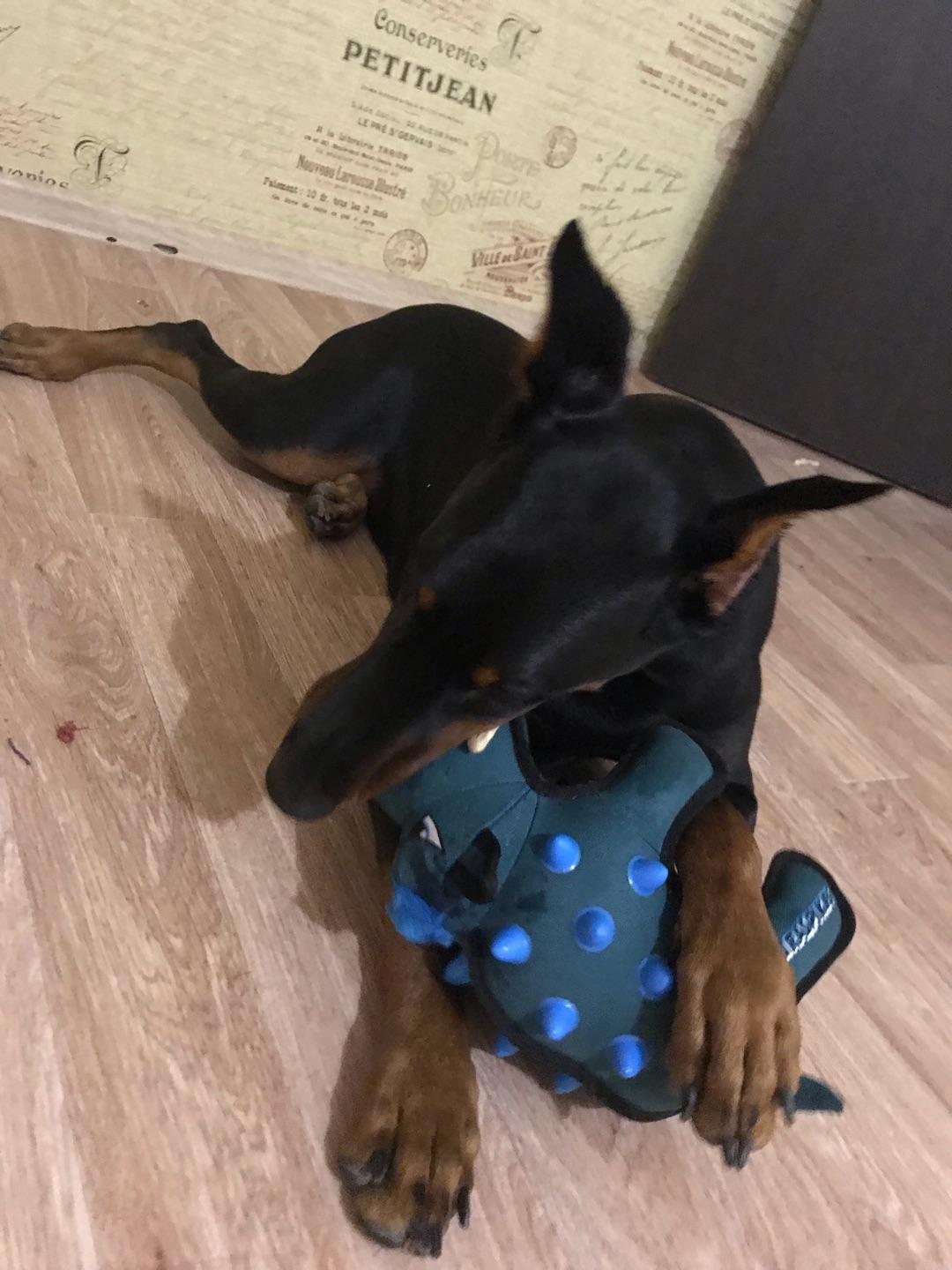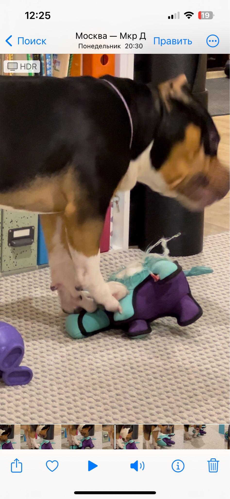 Первая игрушка которую Йорк так и не смог разорвать. Играет постоянно, собачке нравится)Данила