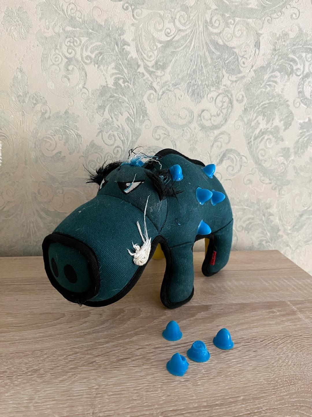 Отличная игрушка. Плотная, тяжеленькая. Купили для хаски - за три дня отгрыз одну кабанью ногу, а там оказалась ещё прослойка брезентовая, то есть элементы сегментированные, сразу не распотрошить. Играет с удовольствием.Марат Ш.