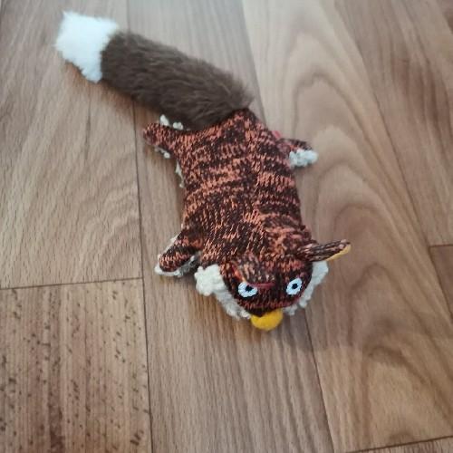 Игрушка супер! Правда мы думали, что это белка. Щенку нравится трепать её и за тело, и за мягкий пушистый хвост. Пищалка ненавязчива, но щенок сам пищать ещё не научился. Крепкая, щенок Йорка таскал её около 4 месяцев постоянно, всё выдержалаМария