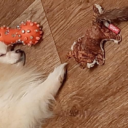 Обожаемая игрушка нашего тойпуделя. Носит в зубах, грызёт хвостик и пищит ей)Ляля И.