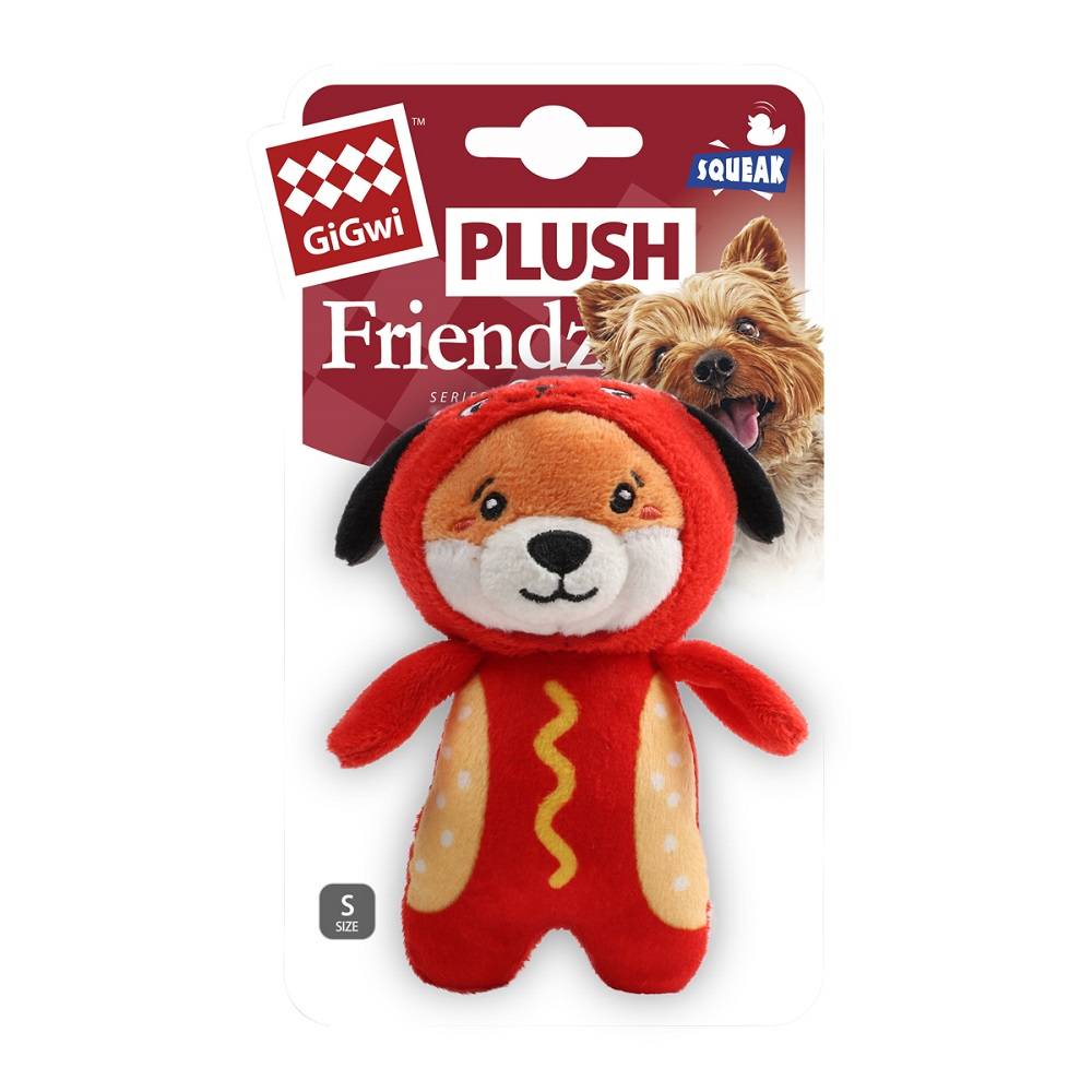 GiGwi Игрушка мягкая для собак Лисичка в костюме хот-дога с пищалкой, 12,5x7x6 cм