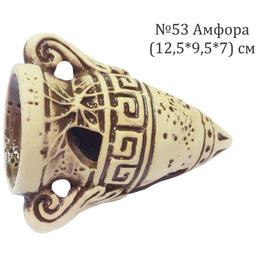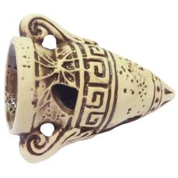 Натуральная, пористая, живая терракота, приглушённого тона, максимально приближенного к природе, местами покрытая тёмной глазурью, ярко подчёркивающей рисунок изделия.