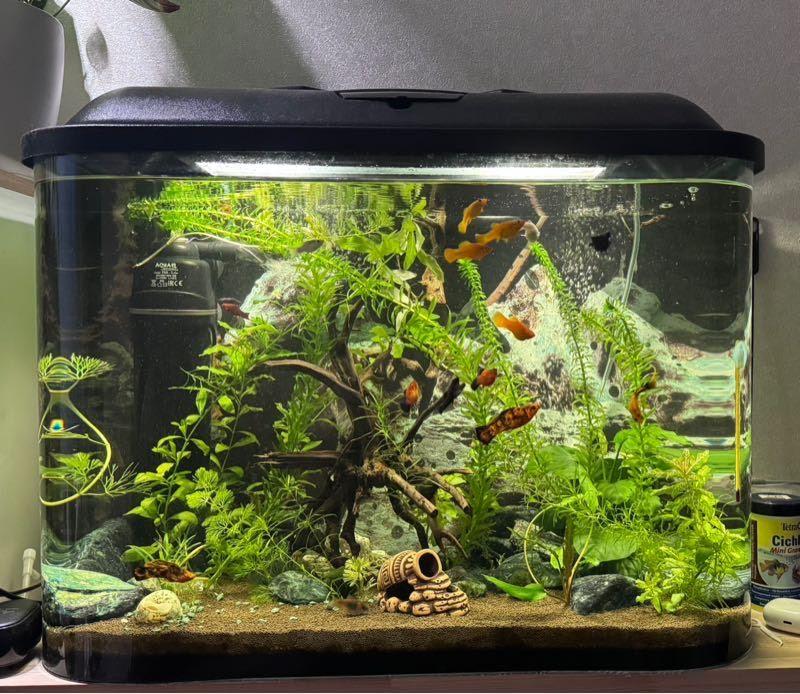 Аквариум с крышкой черного цвета, с лючком для кормления, патрон Е14 - 2 шт., встроенная диодная лампа - 2 шт.
