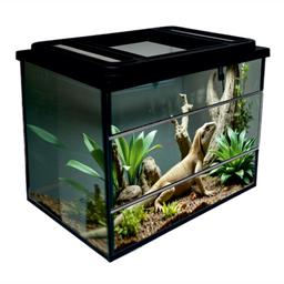 Террариум с крышкой черного цвета, с вентилиционными отверстиями и стеклом для рептилий, объём 42 л — идеальная среда для содержания экзотических питомцев в домашних условиях.