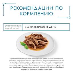 Кормление желательно разделить минимум на два приема. Данная суточная норма рассчитана для умеренно активных взрослых кошек, живущих в условиях нормальной температуры окружающей среды. В зависимости от индивидуальных потребностей кошки норма кормления может быть скорректирована для поддержания нормального веса Вашей кошки.