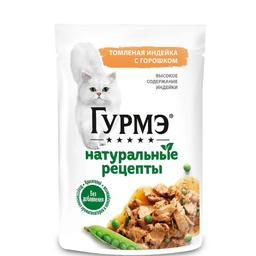ГУРМЭ® Gourmet Влажный корм (пауч) для взрослых кошек Натуральные рецепты, с томленой индейкой с горошком, 75 гр.