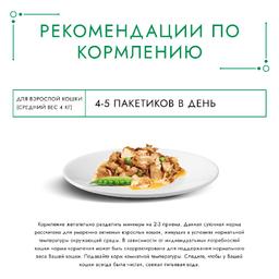 Для взрослой кошки среднего веса (4 кг) требуется 3-4 пакетика в день. Кормление желательно разделить минимум на два приема.