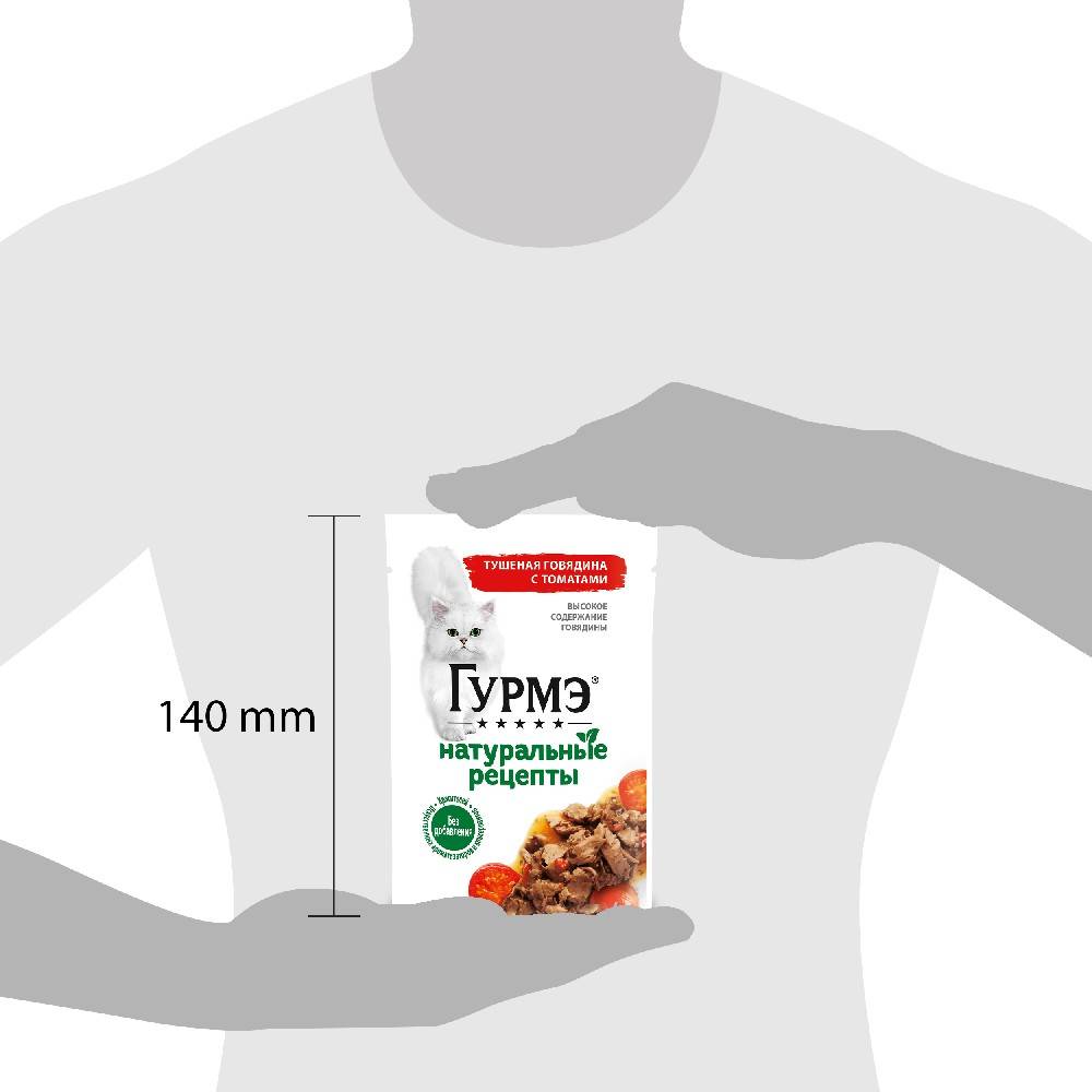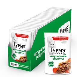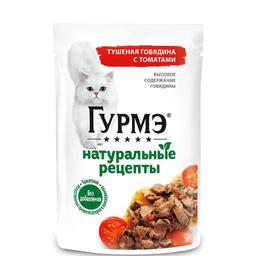 ГУРМЭ® Gourmet Влажный корм (пауч) для взрослых кошек Натуральные рецепты, с тушеной говядиной с томатами, 75 гр.