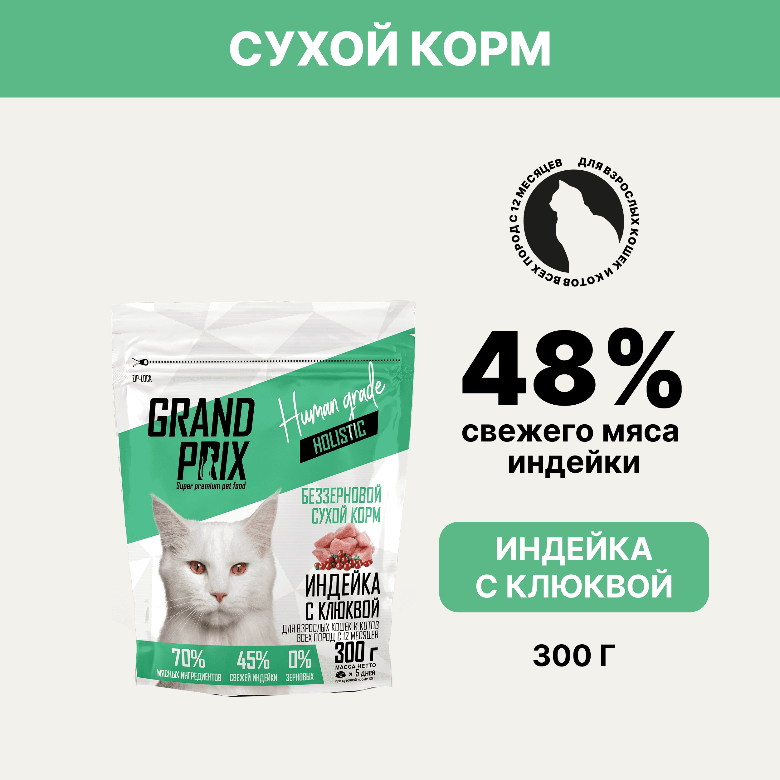 GRAND PRIX — натуральное питание без злаков, созданное для здоровья и долголетия кошек.