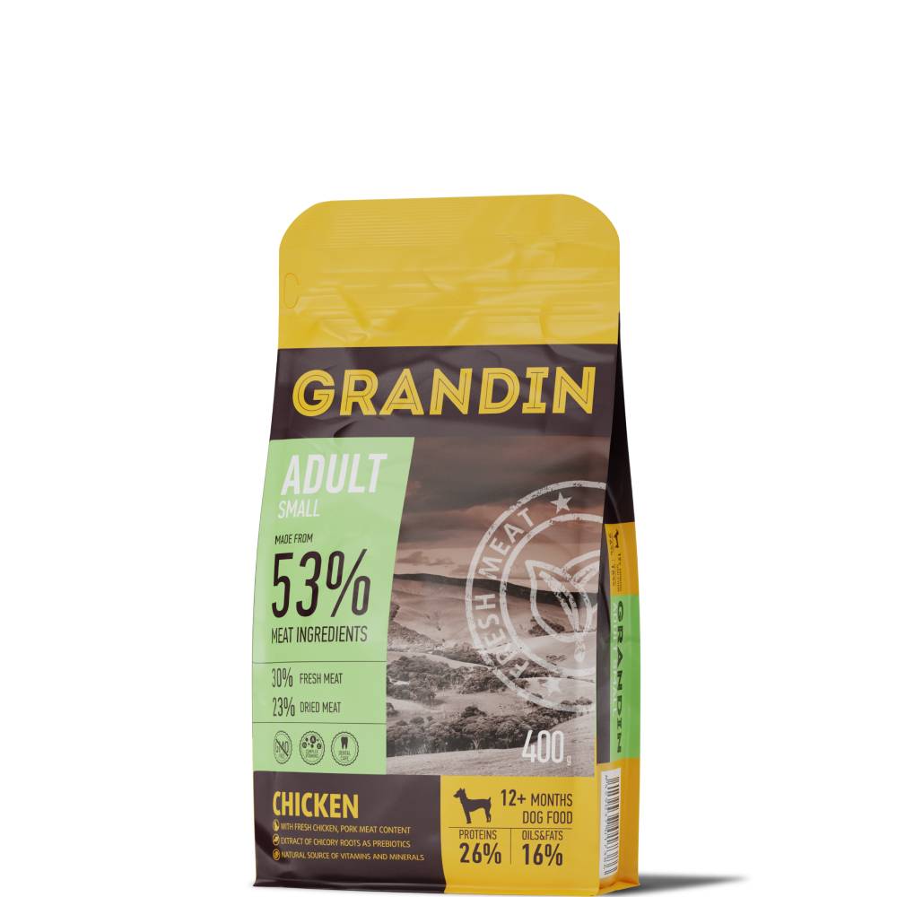 GRANDIN ADULT SMALL CHICKEN – это полноценный сбалансированный рацион для взрослых собак мелких пород. Новая улучшенная формула питания: свежее мясо цыплёнка в миксе с полезными составят максимально правильный рацион для вашего питомца!