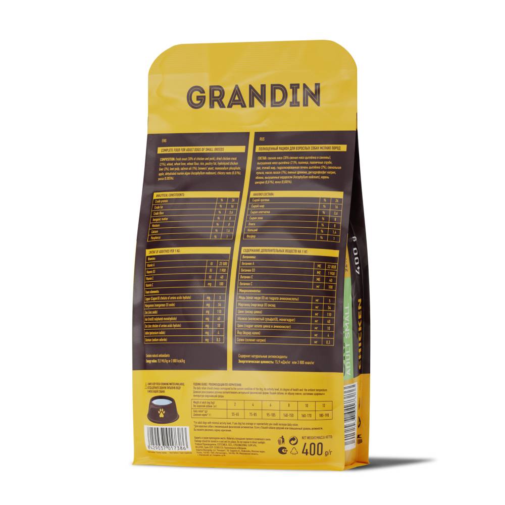 GRANDIN ADULT SMALL CHICKEN – это полноценный сбалансированный рацион для взрослых собак мелких пород. Новая улучшенная формула питания: свежее мясо цыплёнка в миксе с полезными составят максимально правильный рацион для вашего питомца!