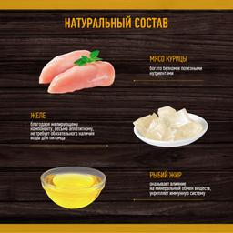 - Курица в составе стимулирует рост мышечной массы и поддерживает иммунную систему.
