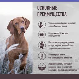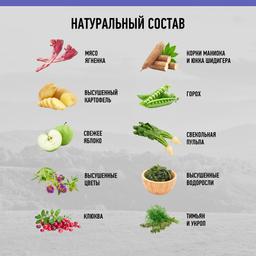- Корм отличается высоким содержанием мяса – 64%, при этом свежее мясо ягнёнка составляет 50%, что является одним из самых высоких показателей в категории сухих кормов.