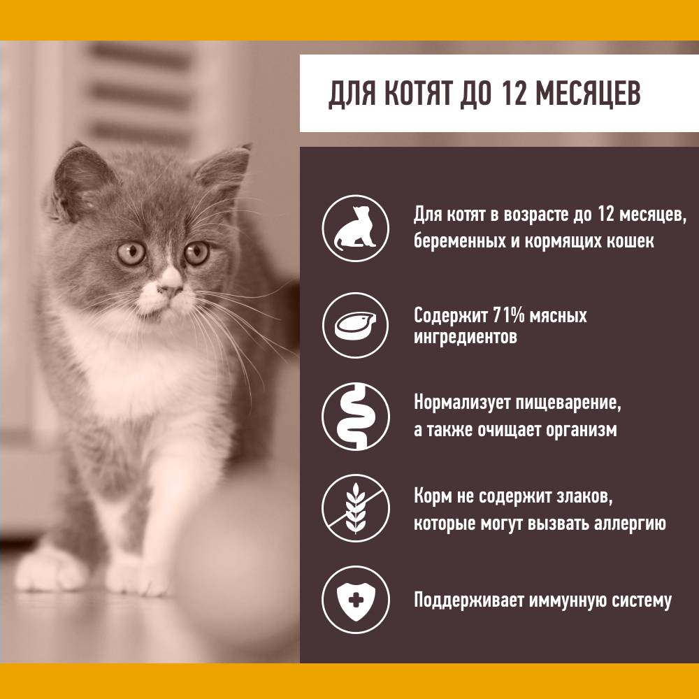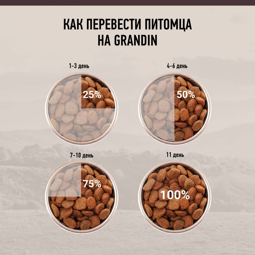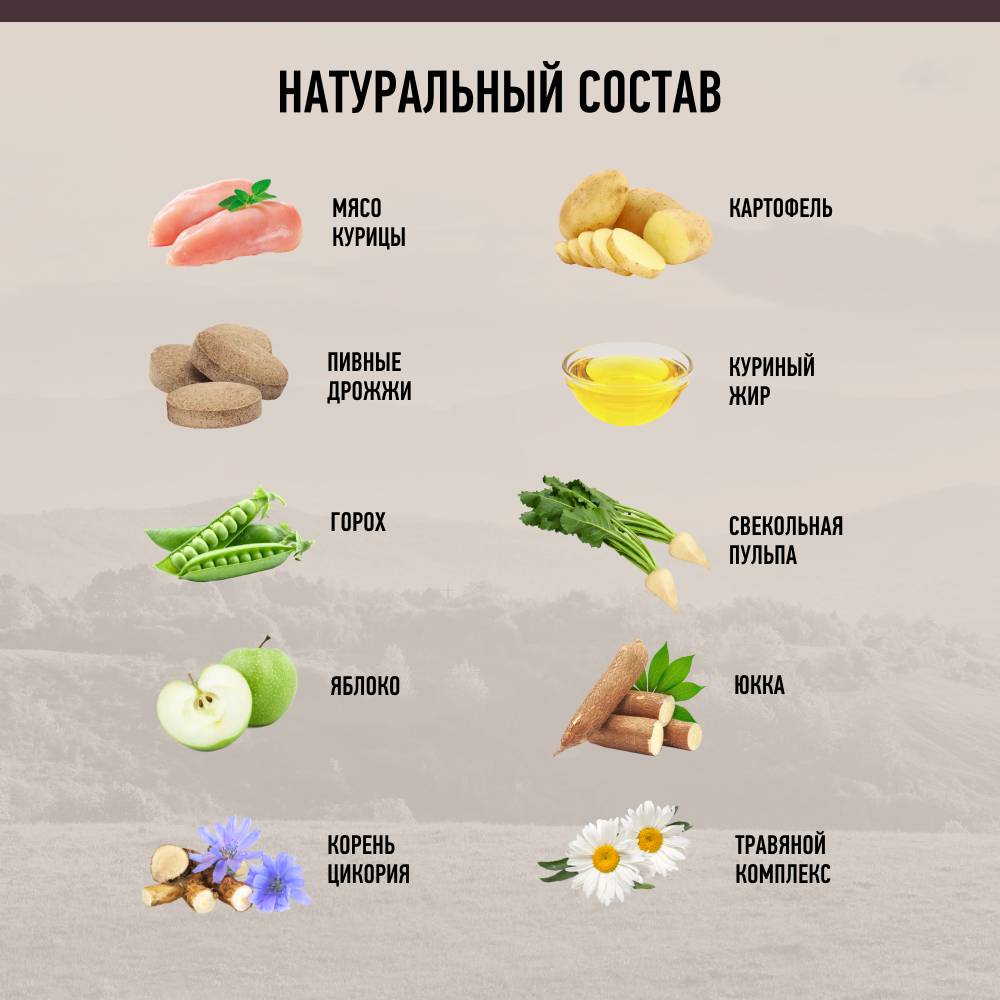 - Корм не содержит злаков, снижая таким образом риск аллергических реакций.