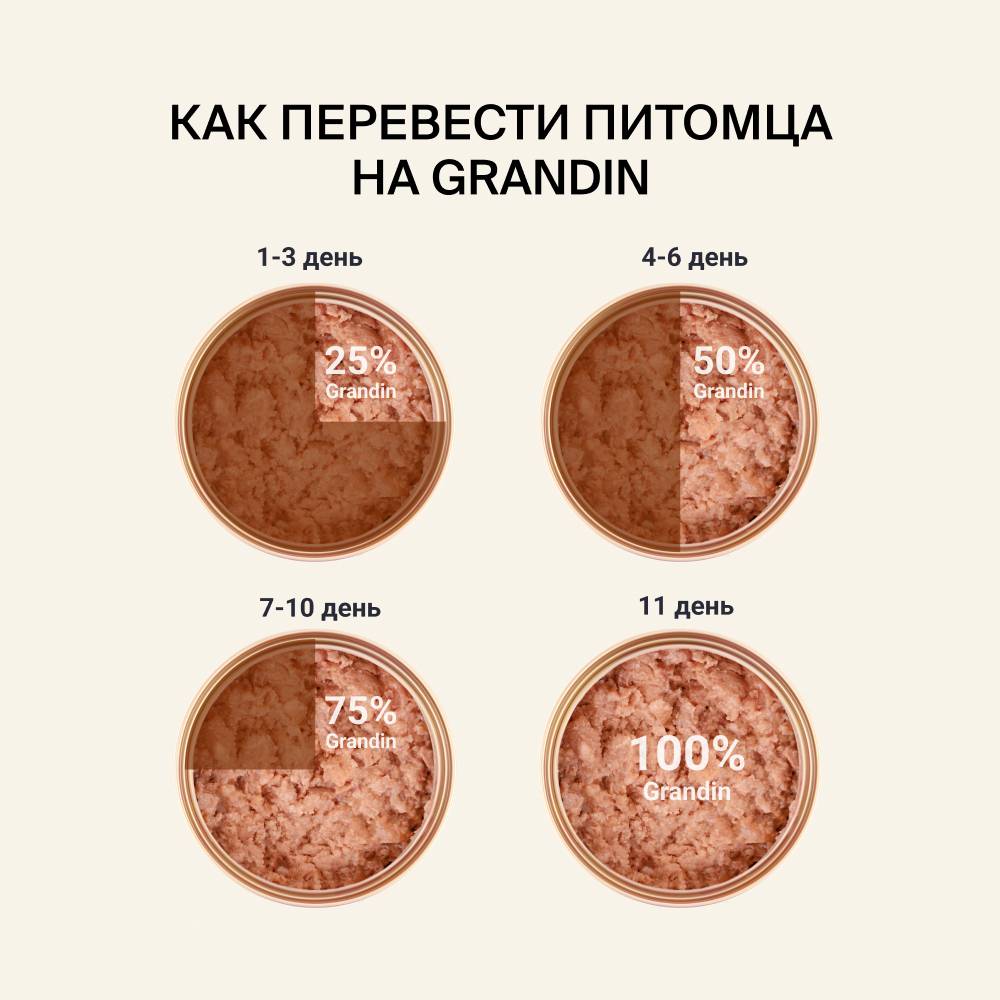 GRANDIN полноценный консервированный корм для собак на основе мяса индейки составит отличную основу для повседневного питания подрастающего питомца.