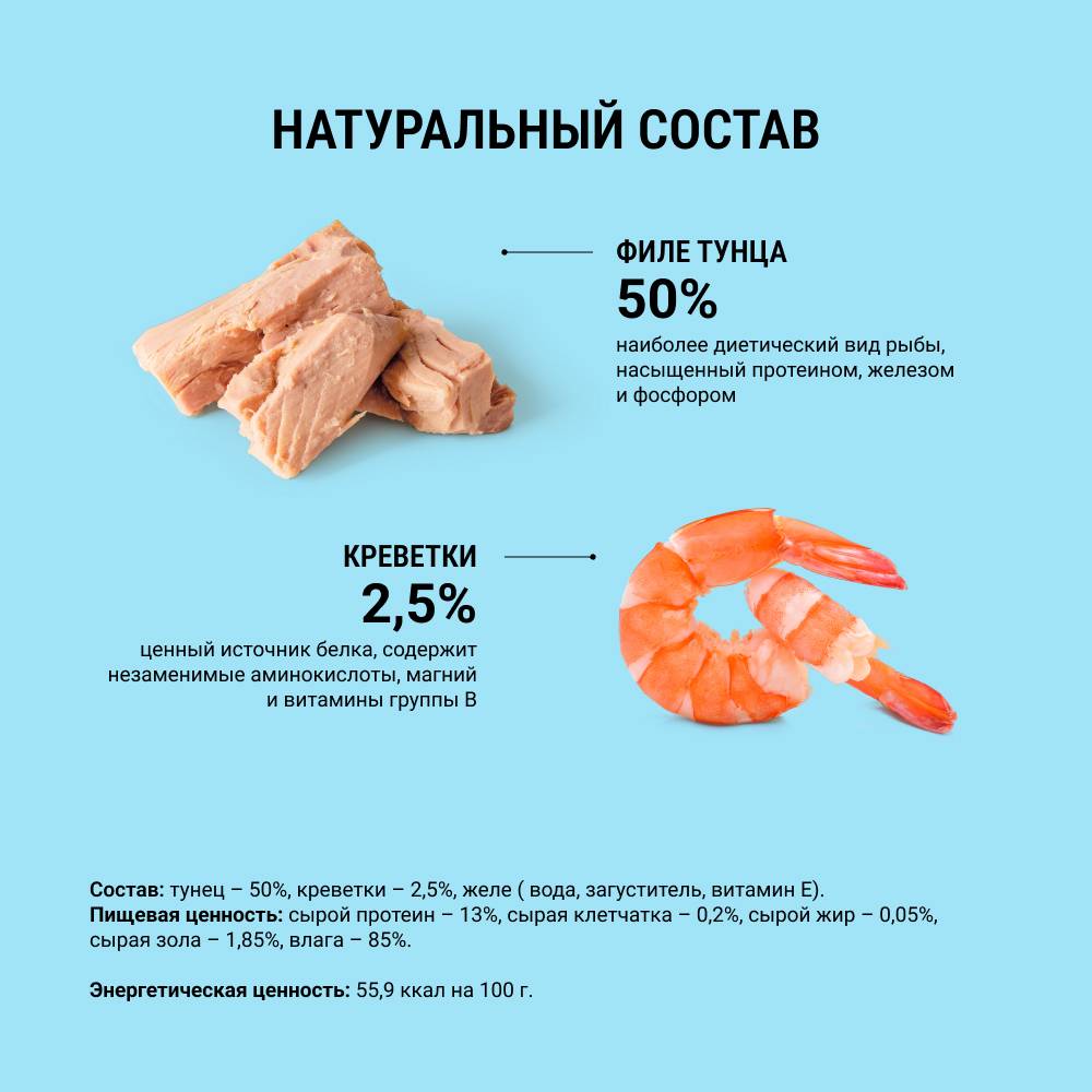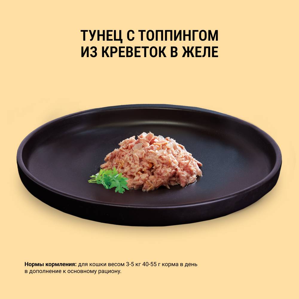 GRANDIN Holistic Health Privilege Тунец с топпингом из креветок в желе — высококачественный консервированный корм для взрослых кошек с повышенным содержанием рыбы.