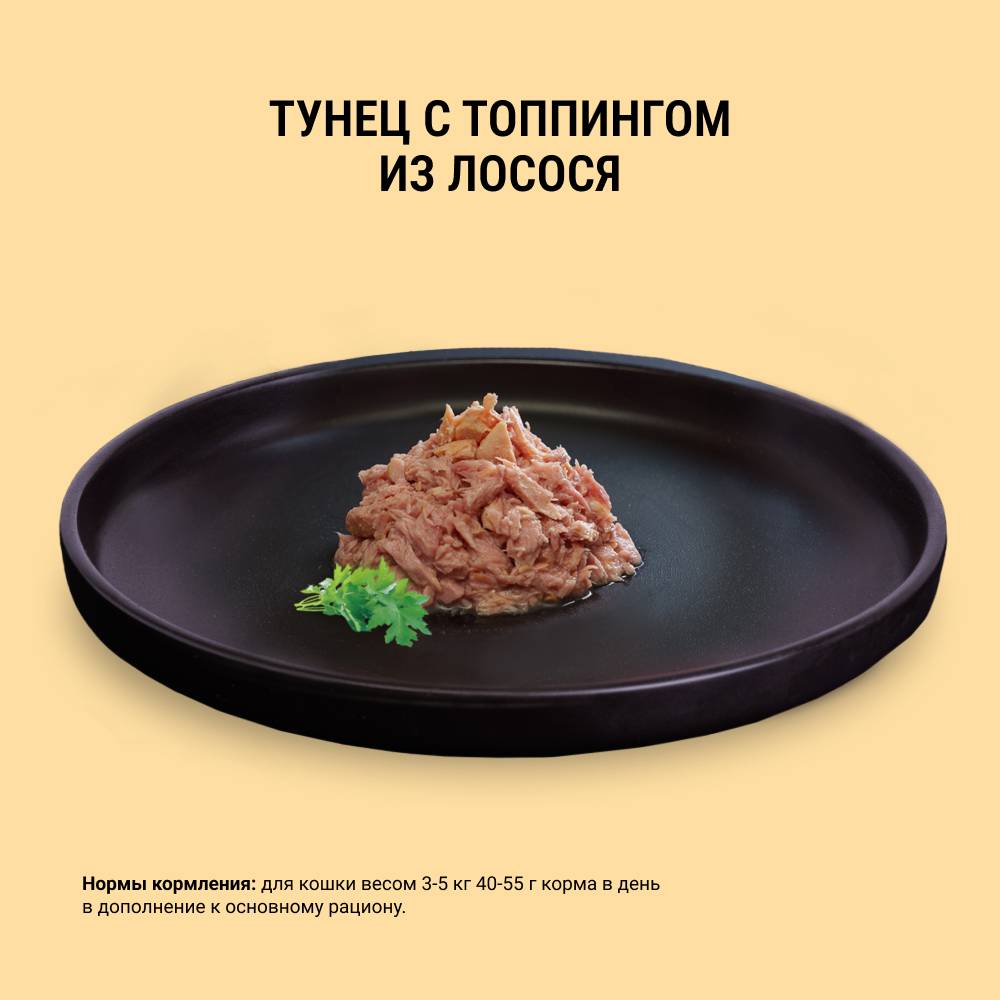 GRANDIN Holistic Health Privilege Тунец с топпингом из лосося - высококачественный консервированный корм для взрослых кошек с повышенным содержанием рыбы.