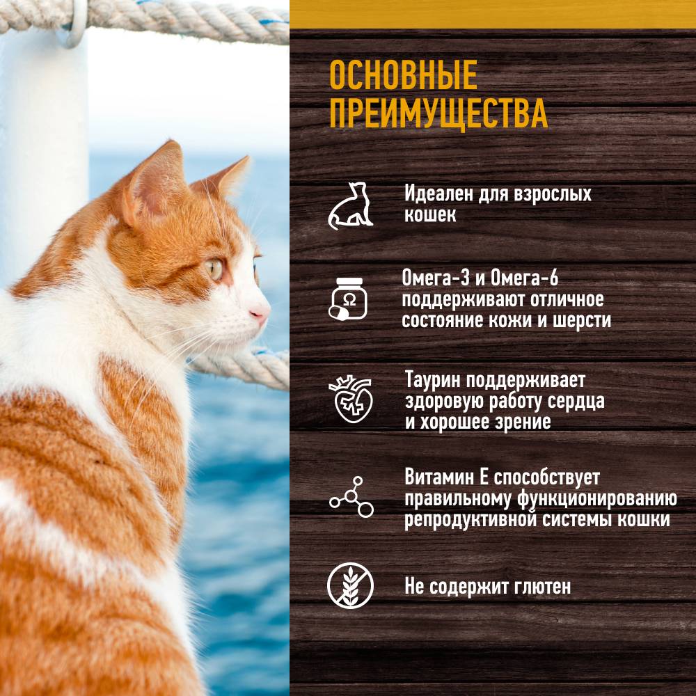 - Не содержит глютен, поэтому не вызывает аллергию у питомцев.