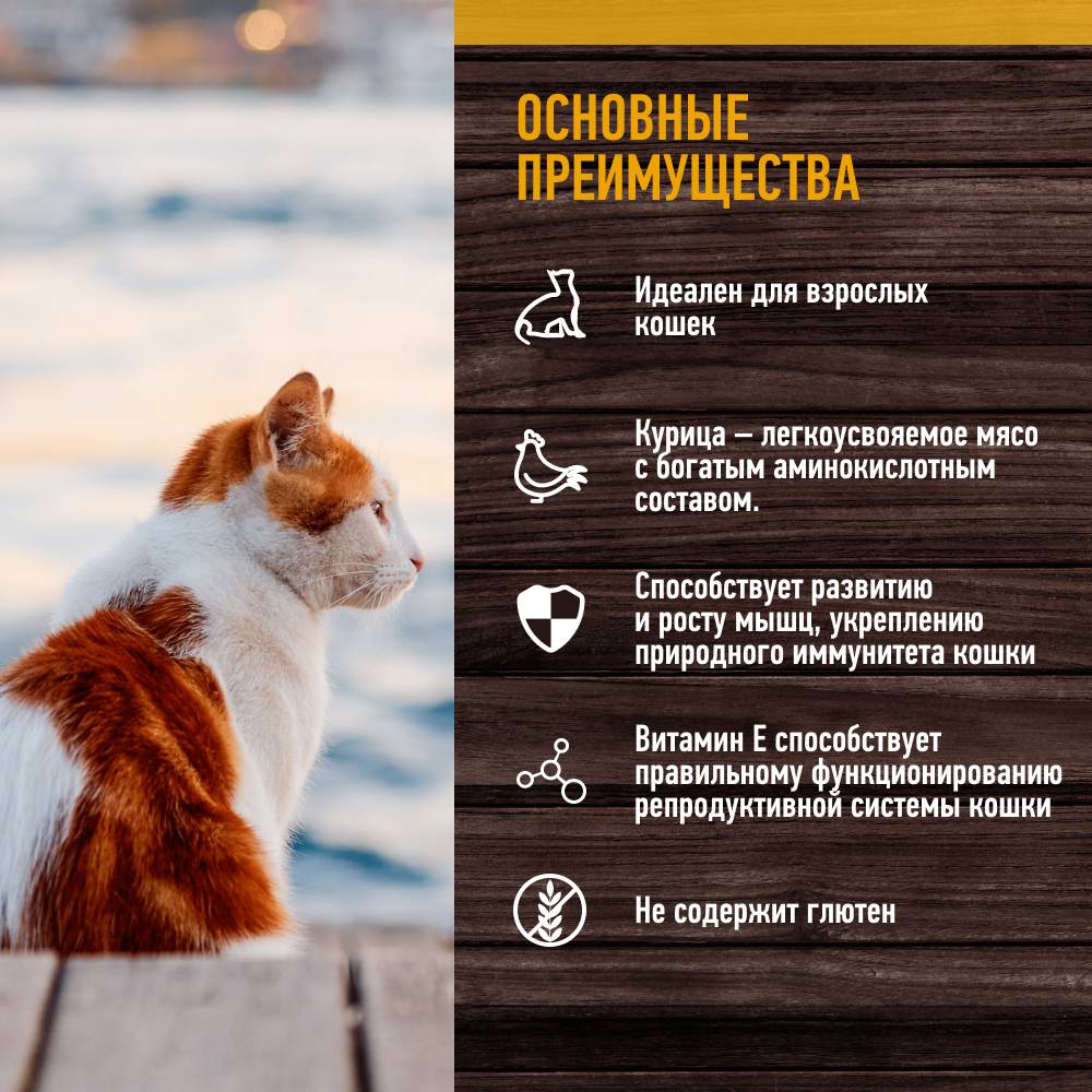- Не содержит глютен, поэтому не вызывает аллергию у питомцев