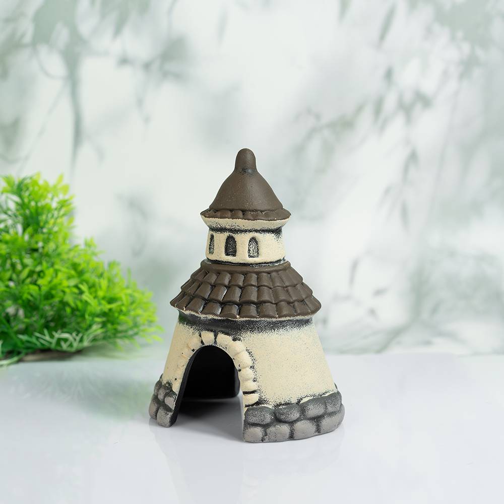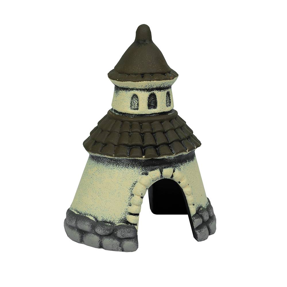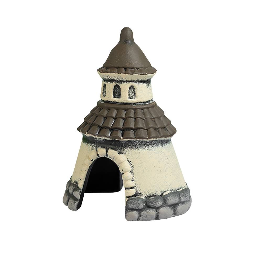 - Грот в форме замка подойдёт для аквариума любого размера.