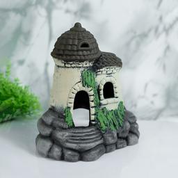 - Грот в форме замка подойдёт для аквариума любого размера.