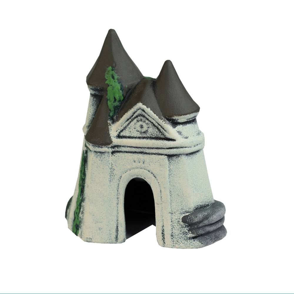 - Грот в форме замка подойдёт для аквариума любого размера.