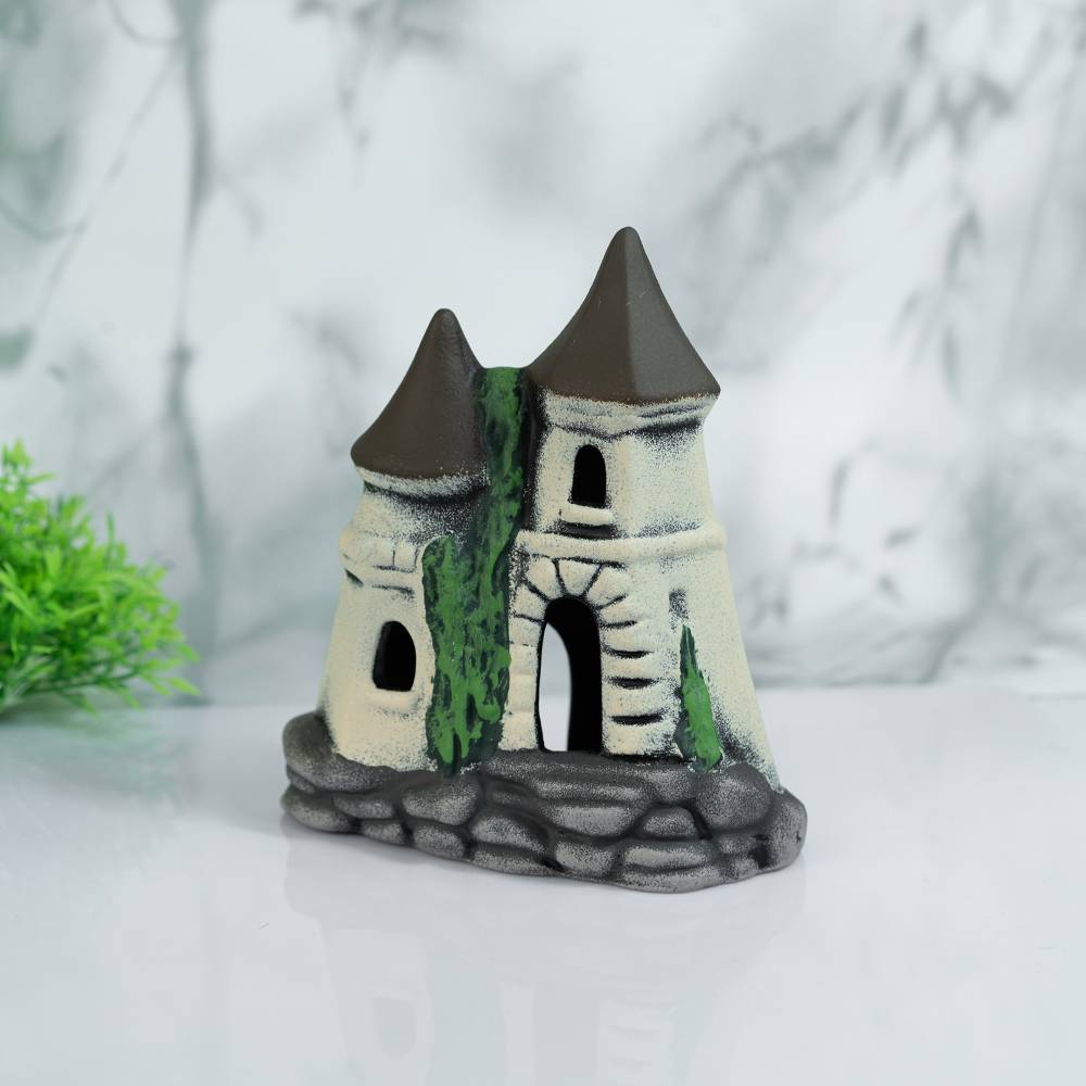 Декор для аквариума Замок с двумя крышами, функциональное укрытие для рыб.