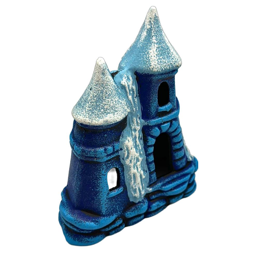 Декор для аквариума Замок с двумя крышами, функциональное укрытие для рыб. Подходит для нереста. Имеет яркий дизайн и сочную раскраску. Если у вас в аквариуме рыбки разного размера, то данный аксессуар будет выступать в качестве дополнительного барьера или защиты маленьких рыбок от более крупных обитателей. Грот в форме замка подойдёт для аквариума любого размера. Может быть использован как в морском так и в пресноводном аквариуме. Замок с двумя крышами выполнен из экологически чистой глины, которая не навредит жизни водных обитателей и аквариумным растениям. Не окрашивает воду и не меняет её состав.