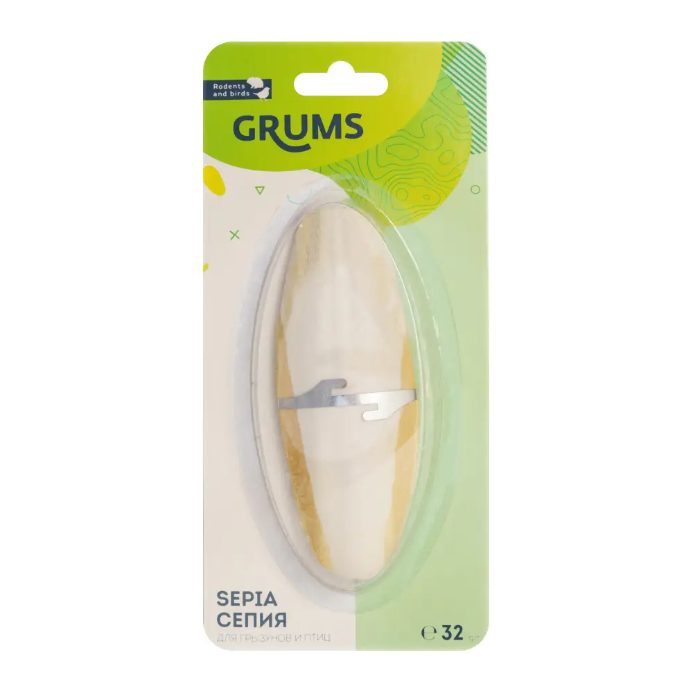 Сепия от бренда Grums – минеральная подкормка для птиц, грызунов рептилий и улиток. Является дополнительным источником кальция, железа, йода, магния, фосфора, меди, хрома и цинка.