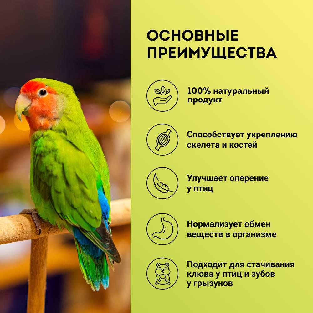 Сепия от бренда Grums – минеральная подкормка для птиц, грызунов рептилий и улиток. Является дополнительным источником кальция, железа, йода, магния, фосфора, меди, хрома и цинка.