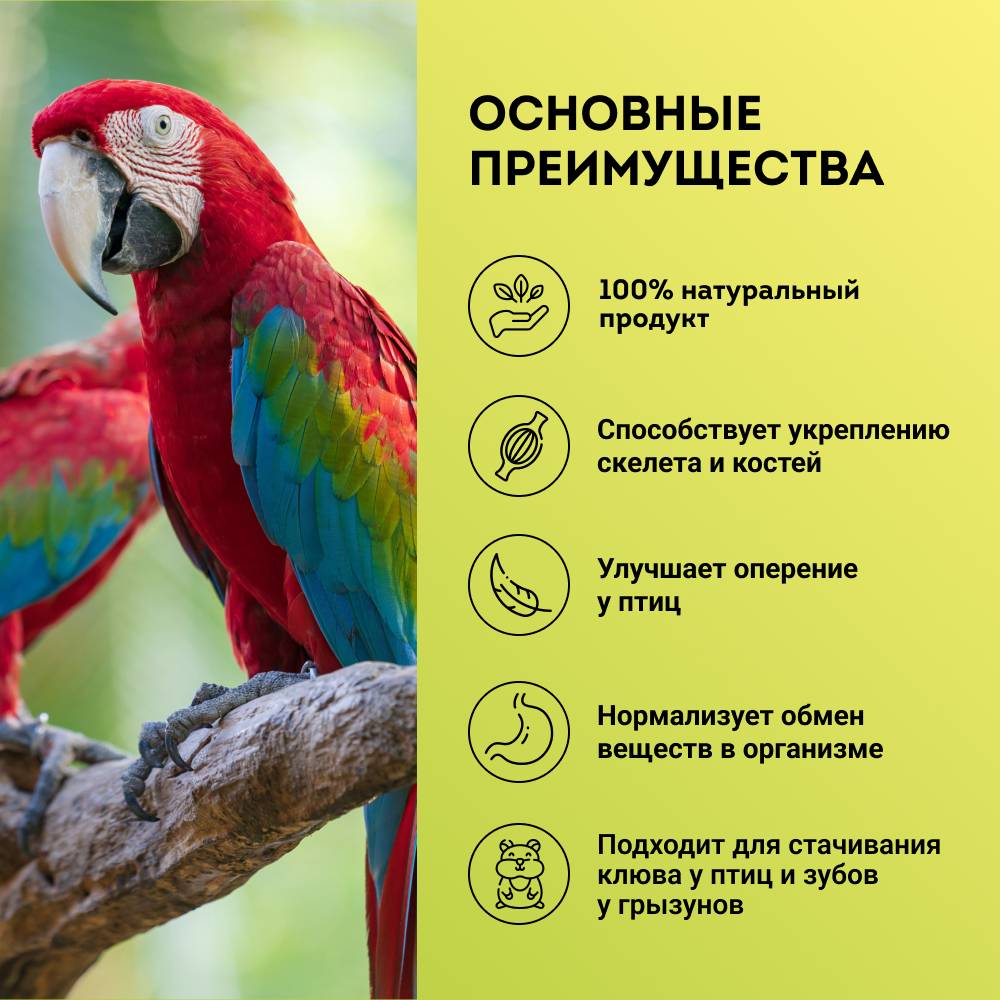 Сепия от бренда Grums – минеральная подкормка для птиц, грызунов, рептилий, улиток. Является дополнительным источником кальция, железа, йода, магния, фосфора, меди, хрома и цинка.