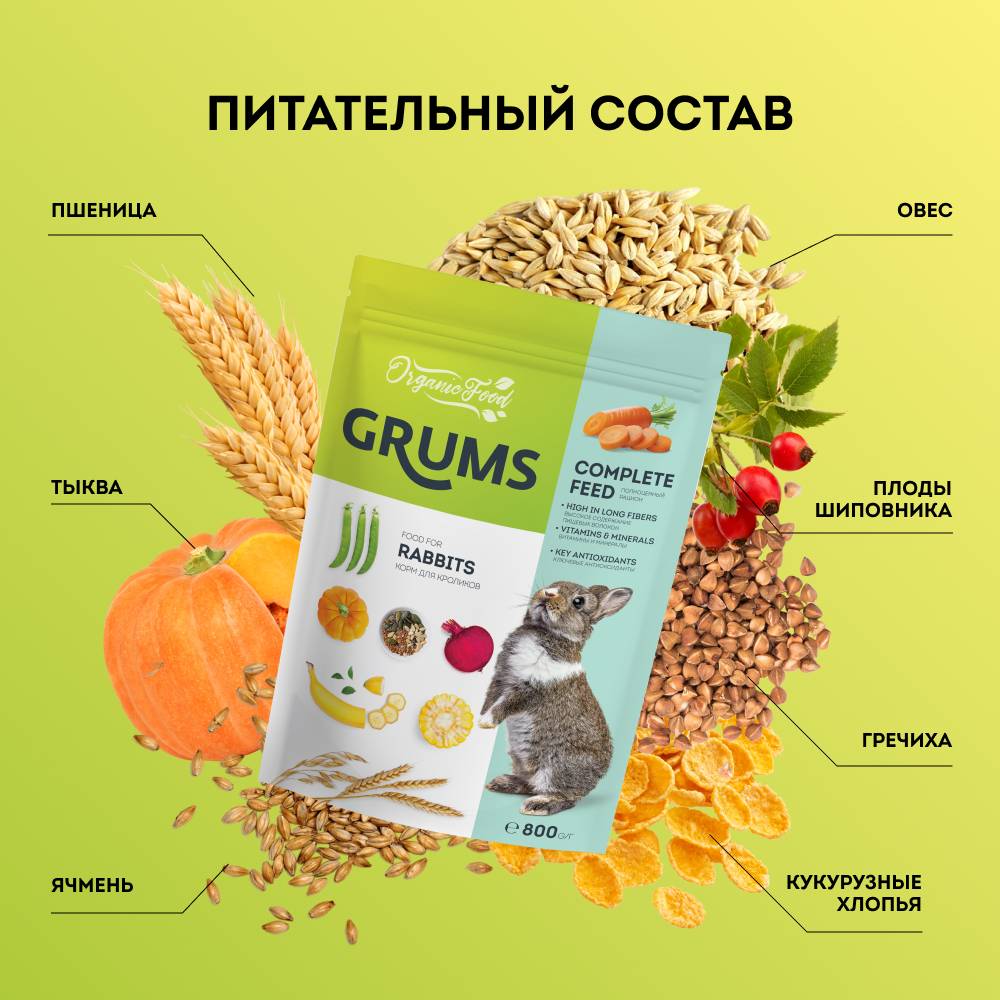Корм GRUMS содержит различные компоненты для разнообразного питания кроликов. Зерновая смесь насыщена витаминами и микроэлементами, которые гарантируют питомцам здоровье, блестящую шерсть, оптимальное пищеварение, крепкие зубы и скелет.