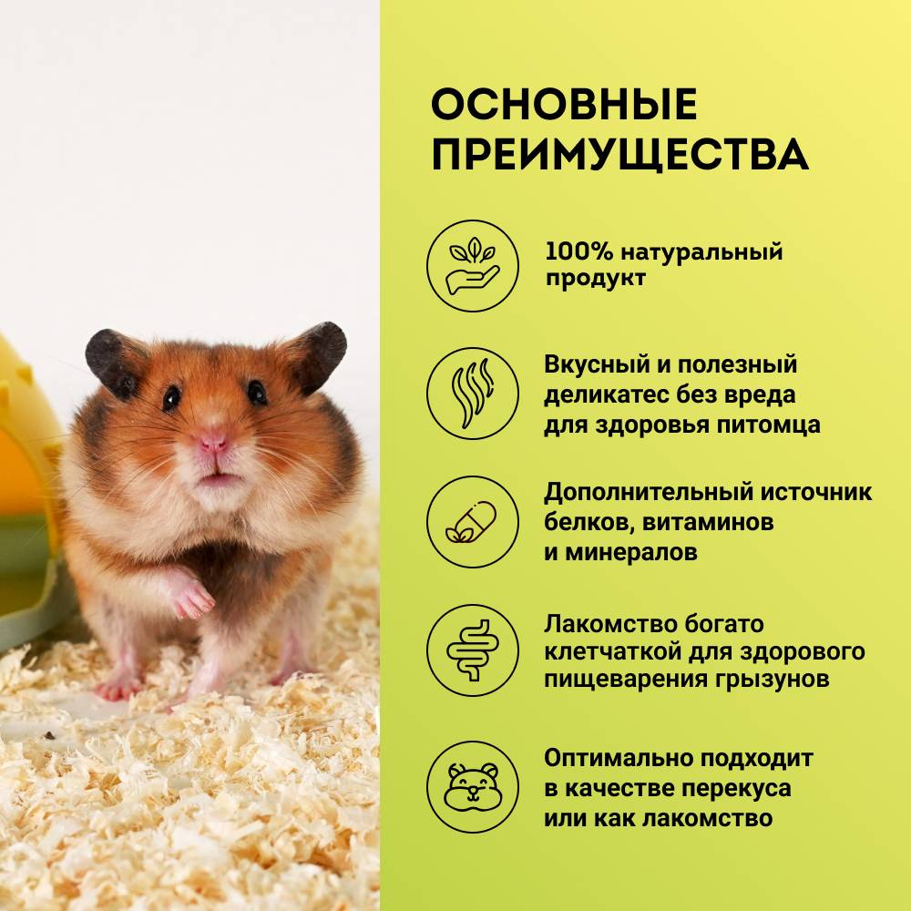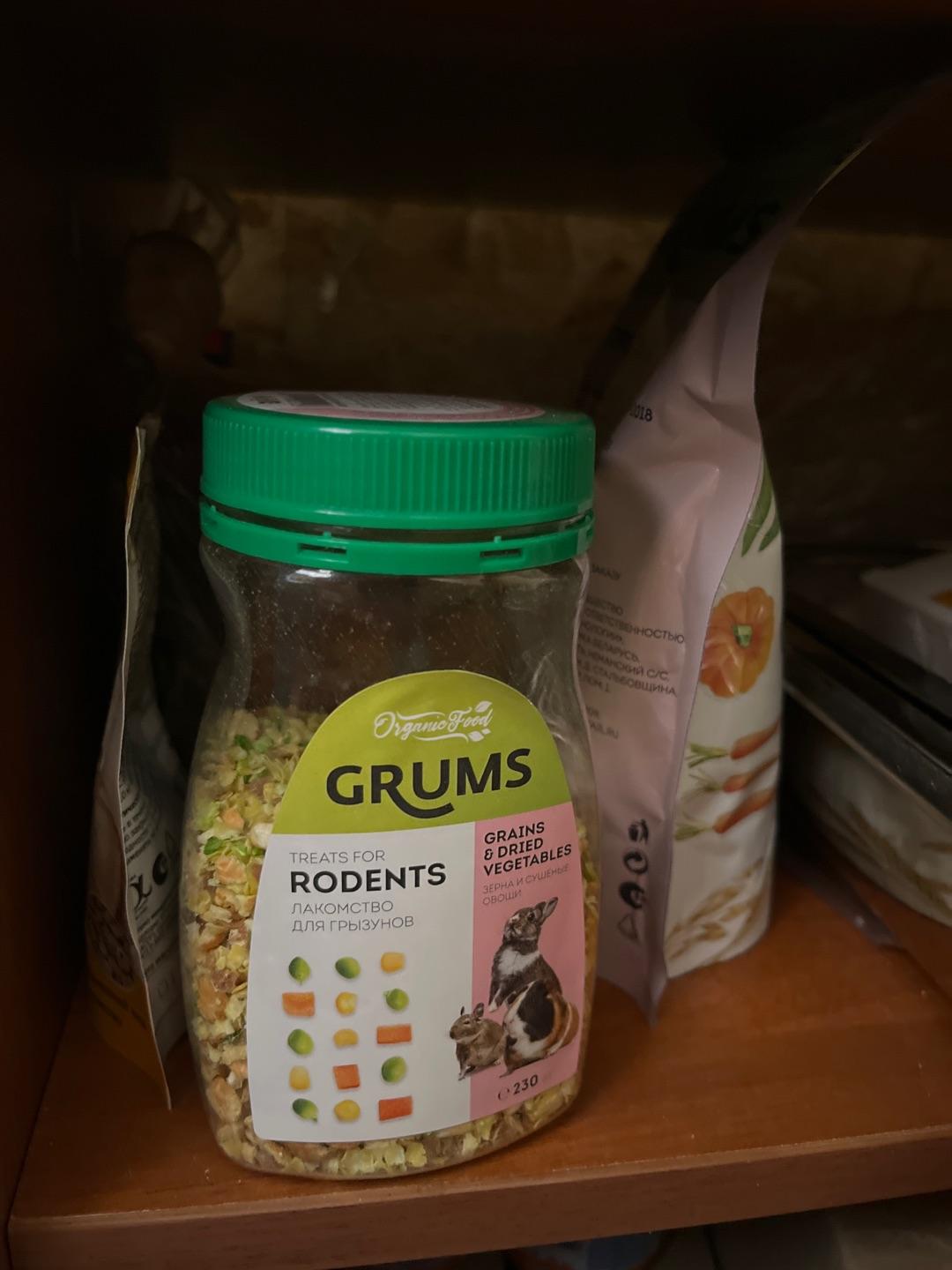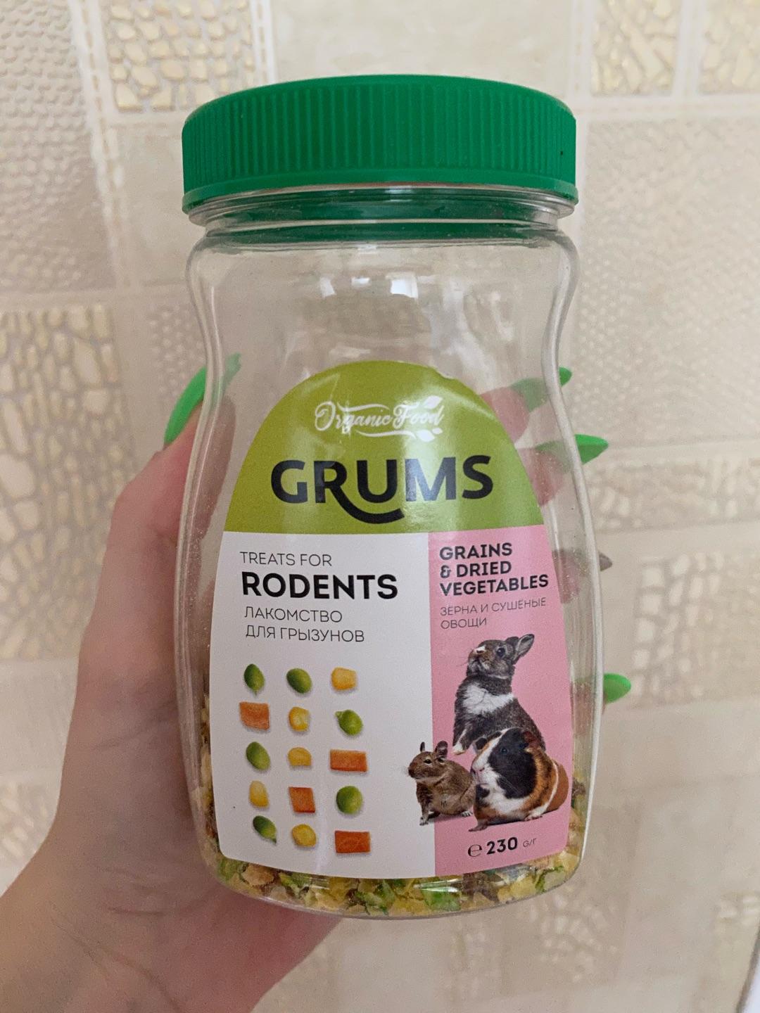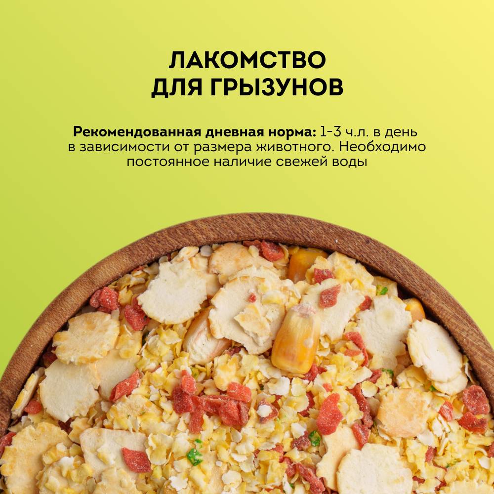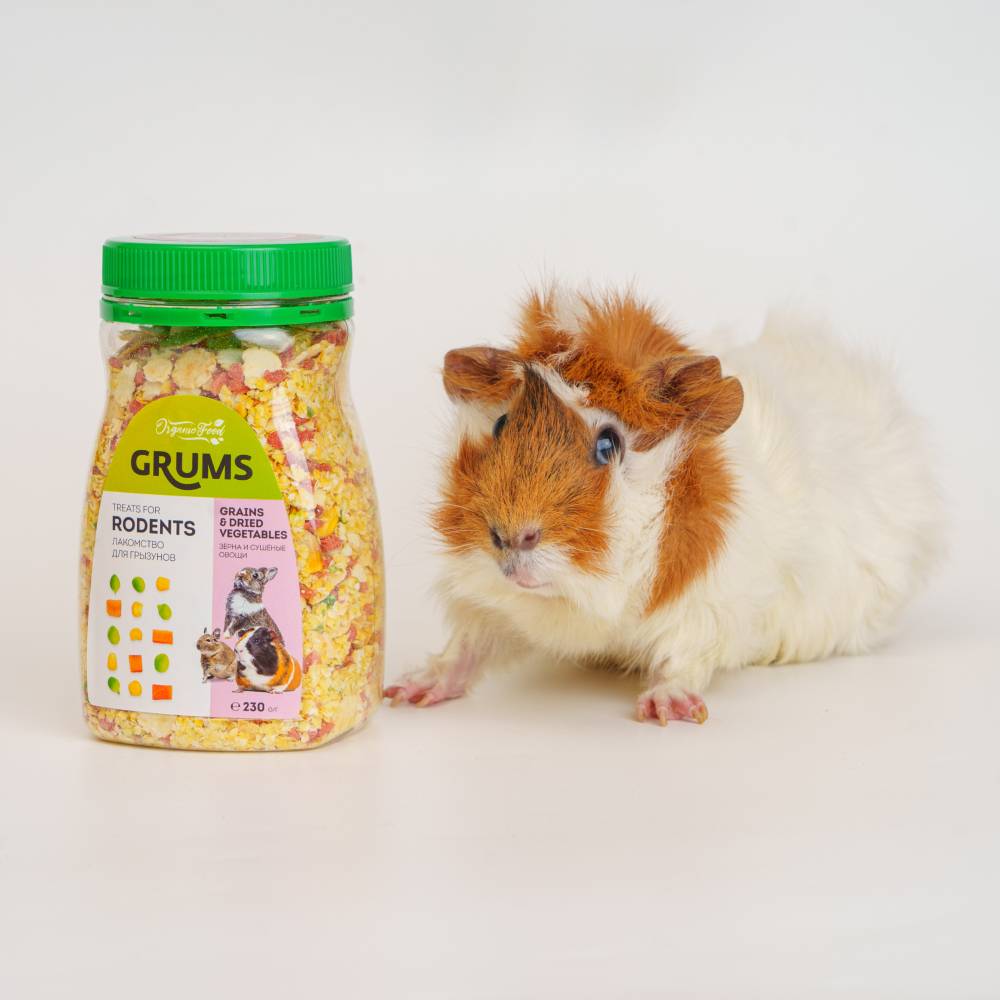 Лакомство GRUMS из гороха, кукурузы и моркови – это аппетитное лакомство для вашего грызуна в дополнение к основному рациону.
