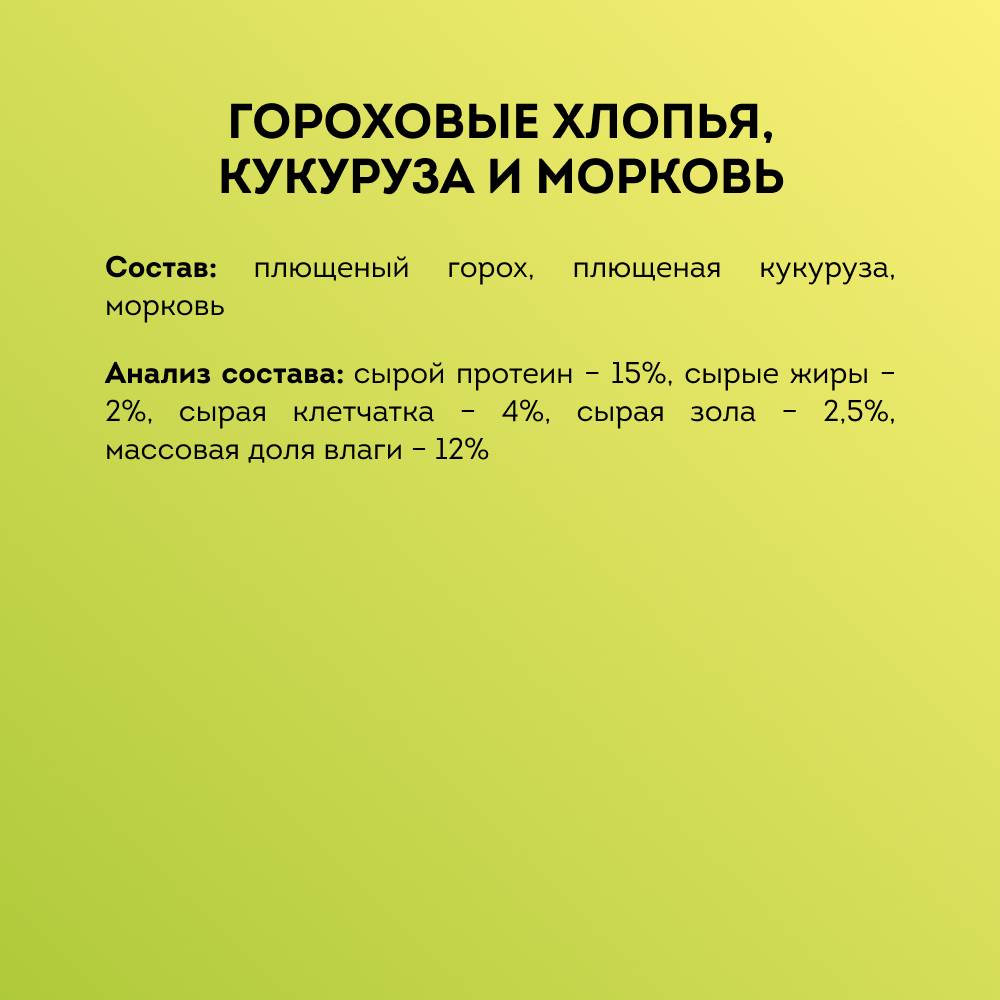 - Ничего лишнего – только 3 полезных ингредиента в составе – горох, кукуруза и морковь.