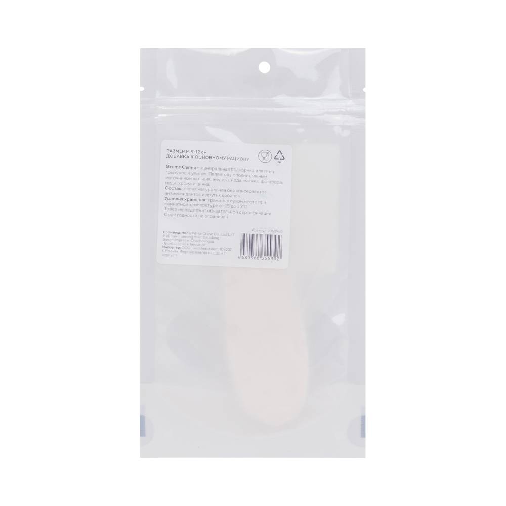 Сепия от бренда Grums – минеральная подкормка для птиц, грызунов и улиток, изготовленная из панциря каракатицы. Является дополнительным источником кальция, железа, йода, магния, фосфора, меди, хрома и цинка.