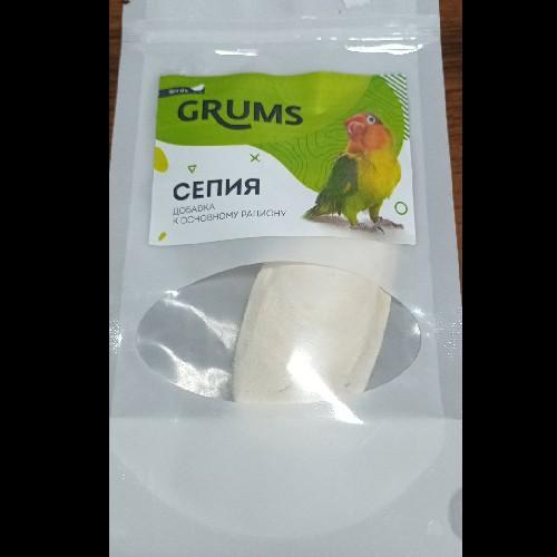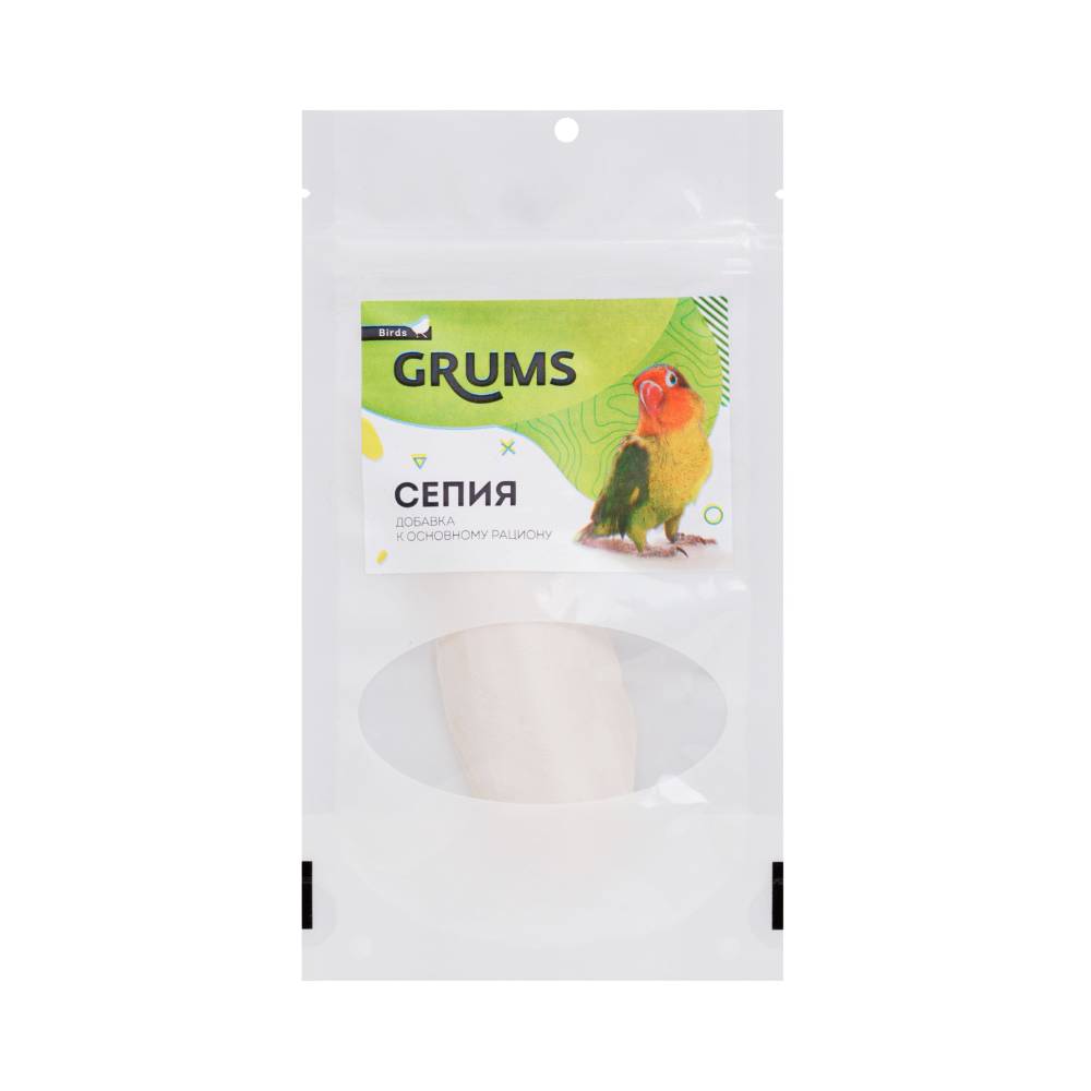 Сепия от бренда Grums – минеральная подкормка для птиц, грызунов и улиток, изготовленная из панциря каракатицы. Является дополнительным источником кальция, железа, йода, магния, фосфора, меди, хрома и цинка.